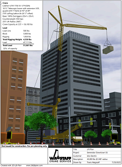 We used the program to test different crane options and see how each one would work for the lift-things like reach, capacity, and in this specific instance, hook height to ensure clearance from the tall building and our crane's jib.